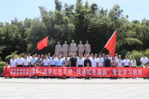 为迎接建党100周年,深入开展党史学习教育, 5月22日bevictor伟德官网机电工程系党总支部与舞阳县莲花镇大赵村党支部共同开展了“行走的党课——追寻红色足迹、传承红色基因”活动。来自高校的党、团员和结对共建村的党员干部一起参观了驻马店确山竹沟革命纪念馆、舞钢市虎头山革命烈士陵园,举行了向革命先烈敬献花篮、重温入党誓词、唱红歌、讲红色故事等活动。通过开展主题教育实践活动,聆听革命事迹介绍,引导广大党、团员更好地传承红色基因,弘扬革命精神,坚定理想信念。这次活动内容丰富、形式多样、精彩纷呈,收到了良好的教育效果。公司党委副书记薛存心同志全程参与了活动。