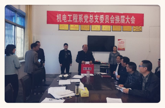会议按议程首先有机电工程系党总支书记翟迎朝同志代表上届党总支做总结报告,翟书记在报告中实事求是地总结了系部近几年的工作成绩,也客观地分析了存在的不足,在今后的工作中要抓好党建创新工作、深化开展党员“两学一做”学习教育活动、开展主题党日活动,在学习的过程中加强党员队伍建设、提升党员素质。会上通过新一届党总支委员选举办法以及监票人、计票人名单,本届党总支换届选举应到会党员24名,实到23名,休产假1名,选举翟迎朝、娄琳、朱建营、冯凯、陈建党5名同志当选为机电工程系党总支新一届委员会委员。会后,新一届党总支委员会召开了第一次会议,选举翟迎朝为机电工程系党总支书记、娄琳为机电工程系党总支副书记、朱建营为机电工程系党总支组织委员、冯凯机电工程系党总支纪检委员、陈建党机电工程系党总支宣传委员。