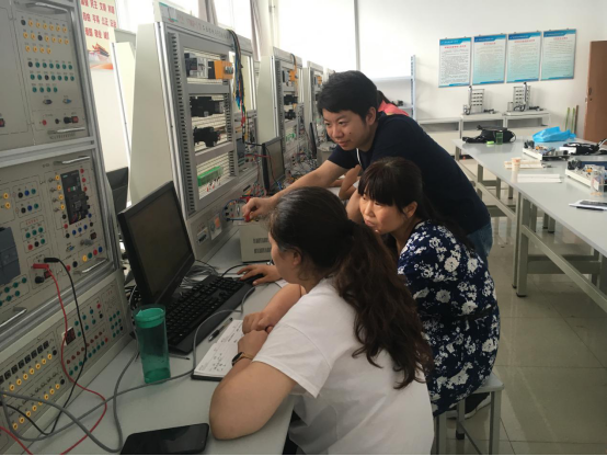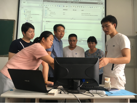 根据机电工程系2018年暑期团队培训计划,机电工程系本年度的暑期实践锻炼以校内实践锻炼为主,充分利用校内实训室设备,开展西门子PLC编程、机械加工能力提升、汽车维护与保养三个项目的实践锻炼。汽车维护与保养项目主要将实训室用车进行维护保养;西门子PLC编程项目聘请企业技术人员进行1200系列PLC应用培训;机械加工能力提升计划于8月份进行,主要进行数控车床、数控铣床、加工中心的操作实训。目前汽车维护与保养和西门子PLC编程项目已顺利开展,参加实践锻炼的教师严格按照培训安排,不畏酷暑,以饱满的工作热情参加实践锻炼,通过项目实施,老师们认为这种锻炼方式很可行,通过在一起共同学习,提升了专业知识,锻炼了实际动手能力。