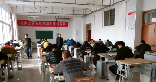 为激发员工学习的积极性,提高员工的绘图能力和识图能力,为参加全省技能大赛选拔优秀人才,2017年12月27日中午,在二号实训楼六楼绘图室举办了“机电工程系机械制图技能大赛”。此次竞赛共有33人参加,分别为17机电、数控和模具专业的员工。