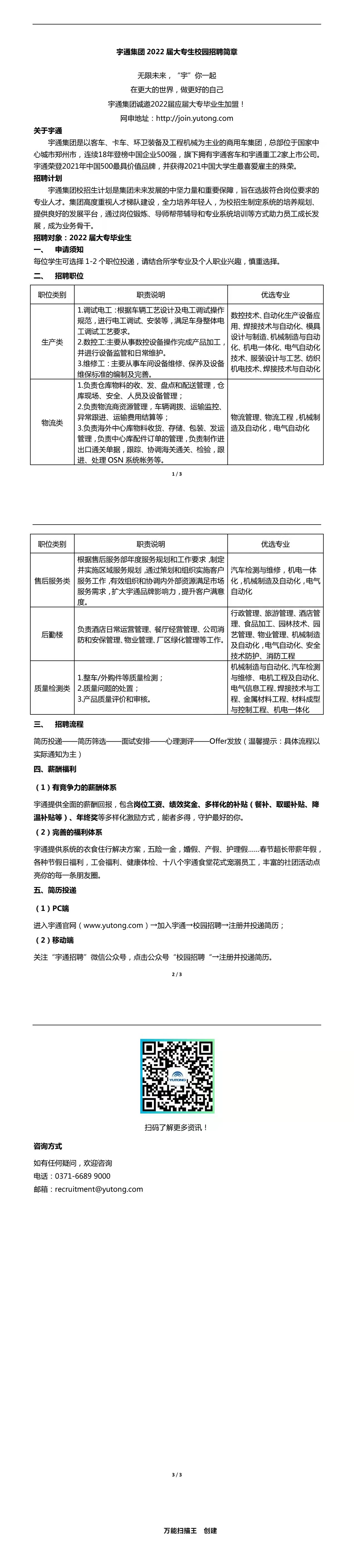 宇通集团 2022 届大专生校园招聘简章
