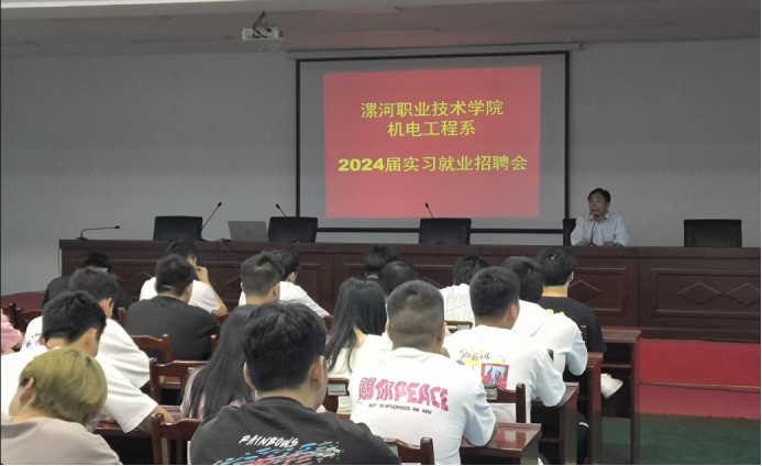 为做好2024届毕业生岗位实习及就业工作,为员工提供更多的岗位资源, 6月8日、9日,机电工程系邀请杭州海康威视电子有限公司、浙江长江汽车电子有限公司、漯河亿通汽车贸易有限公司等14家企业入校举行实习就业招聘会,会议由系副书记朱建营主持。