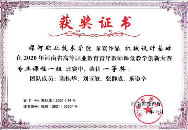2021年,参加河南省职业技能大赛,“数控机床装调与技术改造”赛项获得二等奖。