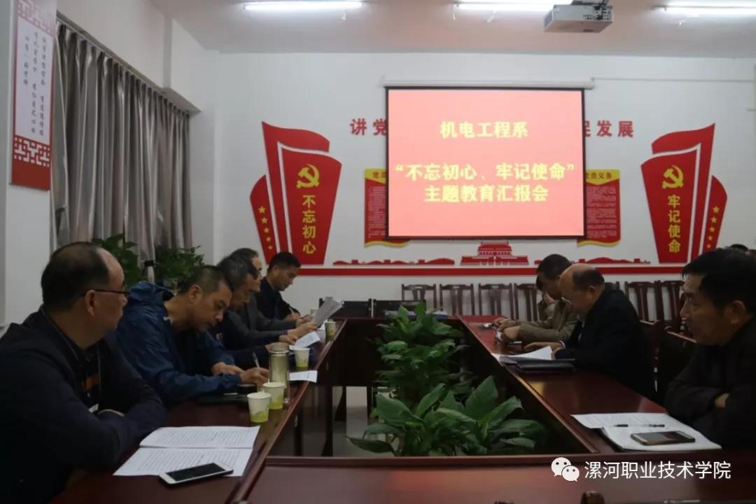 汪继顺在讲话时指出,今天到漯河职院实地考察调研,感到耳目一新,党员干部和教职工精神状态都很好,都在为党育人、为国育才,把教书育人具体工作与主题教育紧密结合。机电工程系办的很有特色,教师队伍素质在提高,员工都在努力成才,主题教育开展深入扎实。公司的根本任务就是立德树人,开展主题教育一定要与实际工作相结合,做到“两不误、两促进”。他指出,机电工程系在前一段的主题教育工作中下了功夫、动了真劲儿、见了实效,在传承红色基因上抓得很紧、很实,希望下一步要在广泛征求意见的基础上搞好调研,通过深入调研,找到解决问题的办法,促进工作扎实有效地开展。