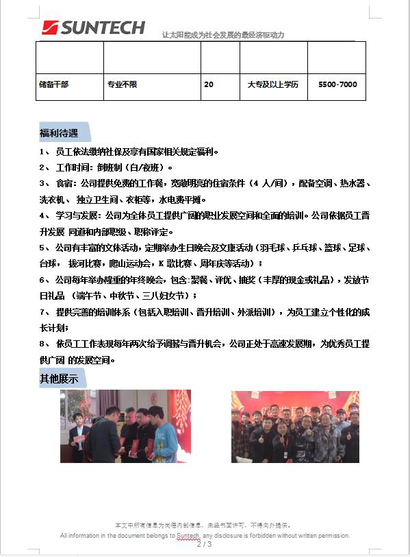 凤阳尚德太阳电力有限公司招聘简章